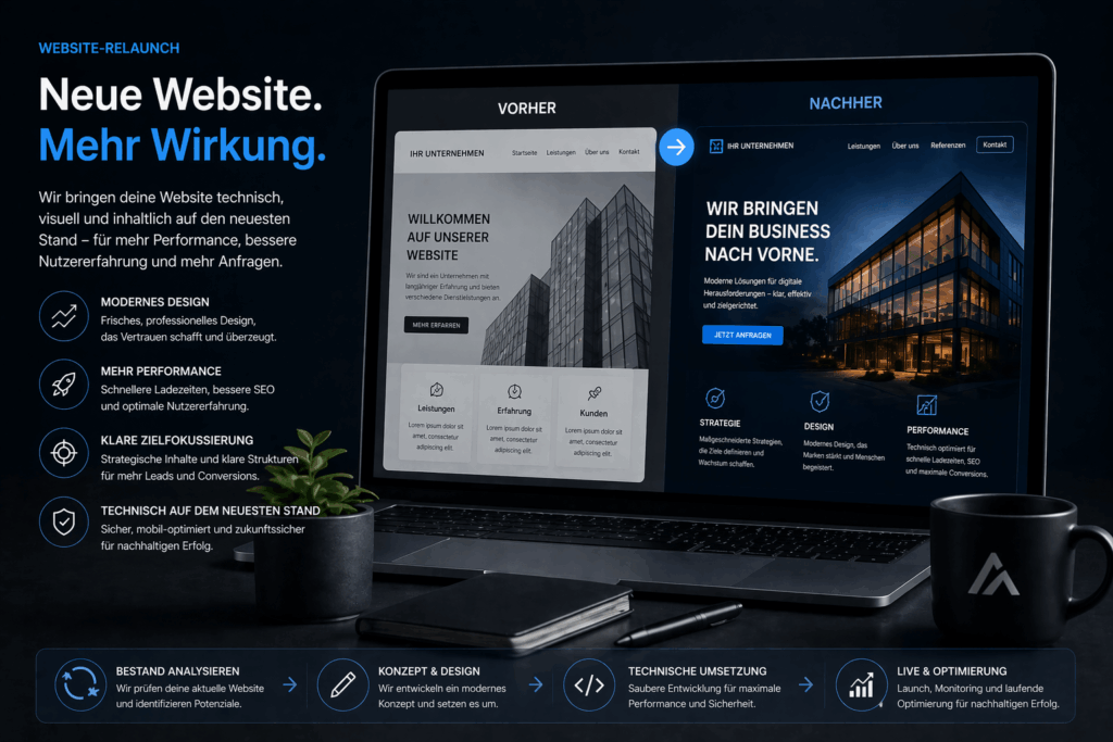 Aus alt wird leistungsstark: Wir machen aus deiner Website einen modernen Auftritt, der überzeugt und Anfragen bringt.